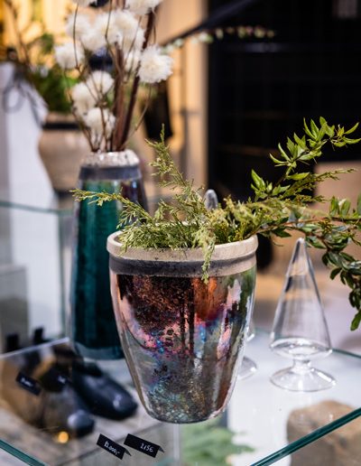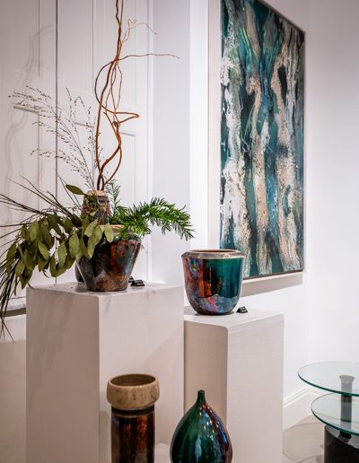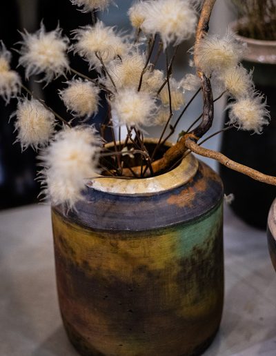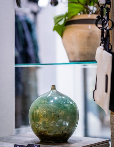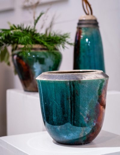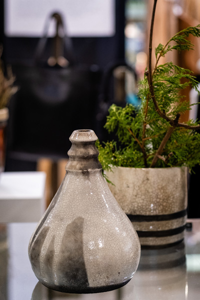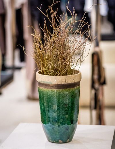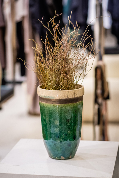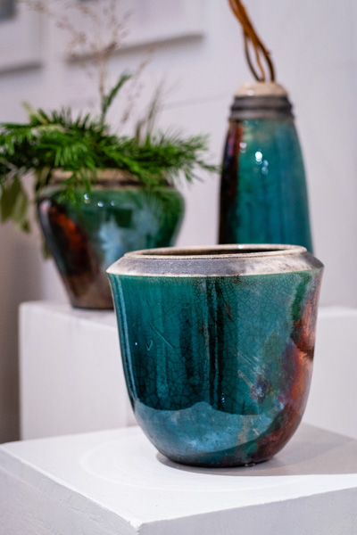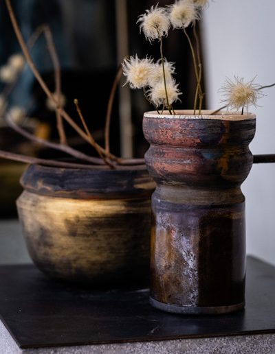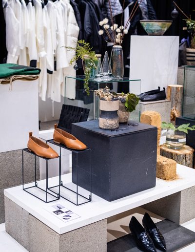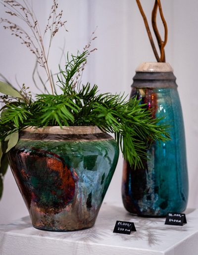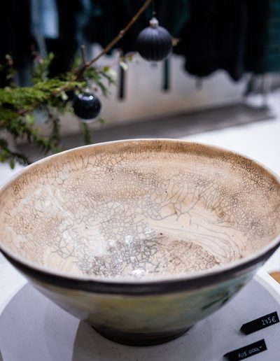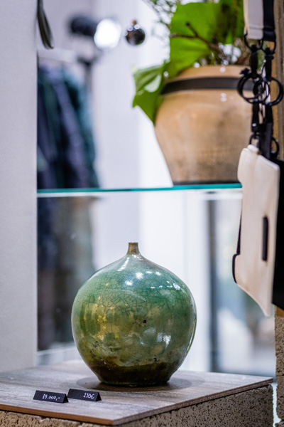 Soltész Ágnes munkái ebben a közegben különösen hangsúlyosan érvényesültek. A raku kerámiák felületén megjelenő repedések, rétegek és finom elszíneződések a természetes folyamatok nyomait hordozzák magukon – olyan értékeket, amelyek szorosan kapcsolódnak a NUBU tervezői szemléletéhez. Az anyag kiszámíthatatlansága és az égetés során kialakuló egyszeri formák párbeszédbe léptek a kollekció strukturált textíliáival, megerősítve a limitált, megismételhetetlen alkotás gondolatát.
